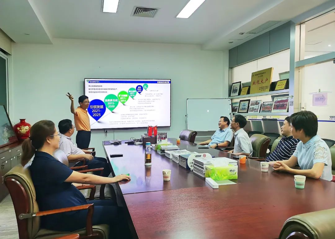 在参观思嘉产品展厅时,领导们看到由思嘉气密、气膜、空间布等材料制造的终端产品,细听产品信息,感受产品质量,对思嘉产品表示认可。